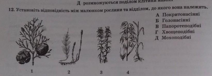 Установіть відповідність між малюнками рослин та відділом, до якого вона належить
