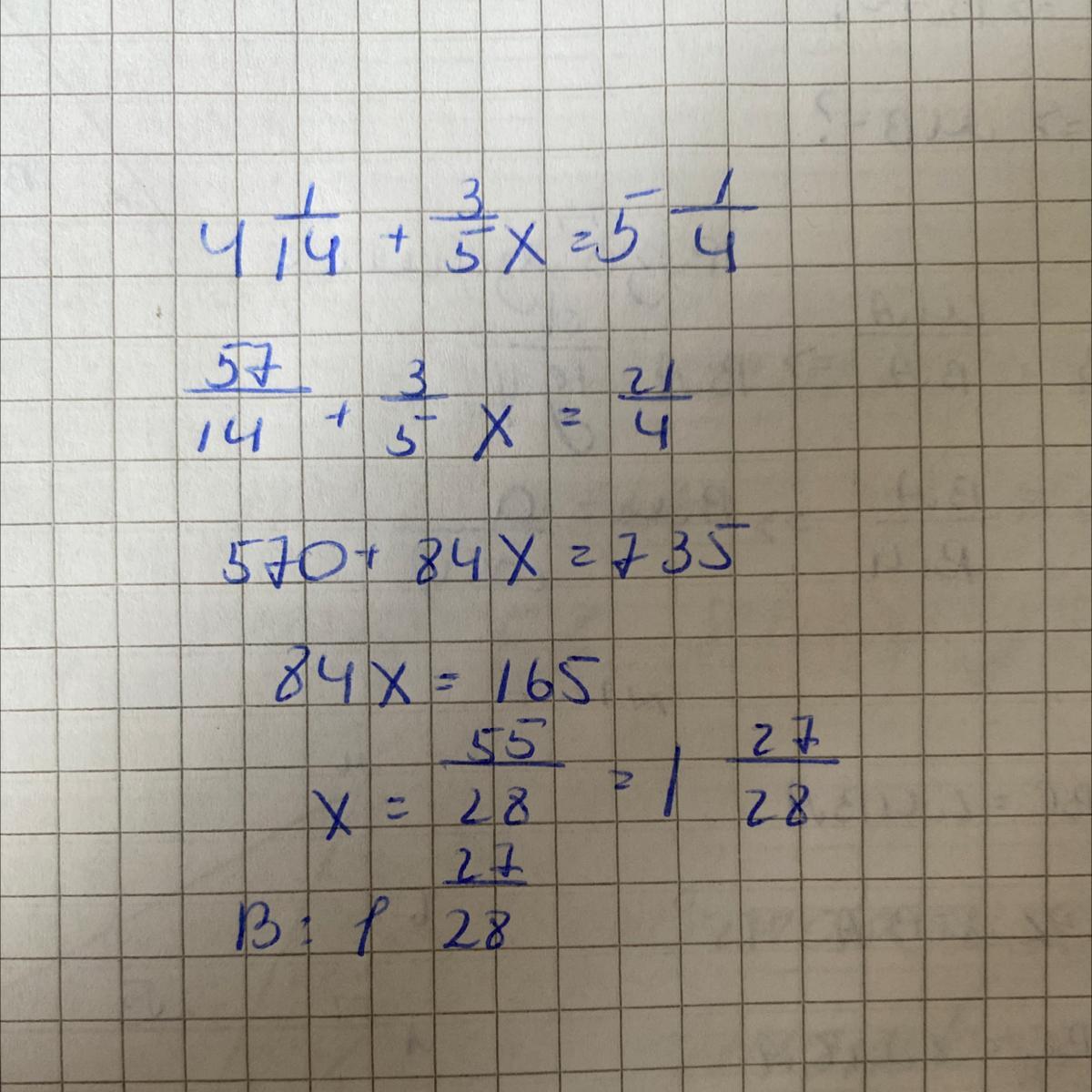 4 1/14+3/5 х=5 1/4