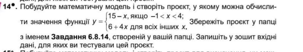 if x > 4 or x < -1 - перевіряемо число якщо воно стверджує умову то y = 6 + 4*x інакше y = 15 - x