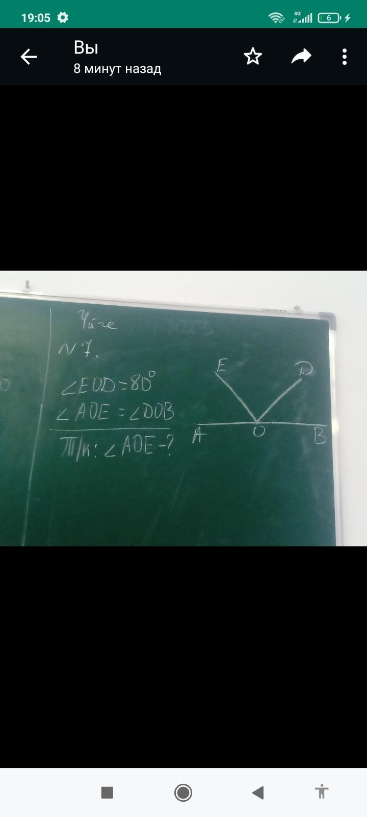 Из условия мы модем понять, что углы AOE и DOB равны, следовательно обозначим их за x. Так же из условия нам дано, что угол EOD равен 80.