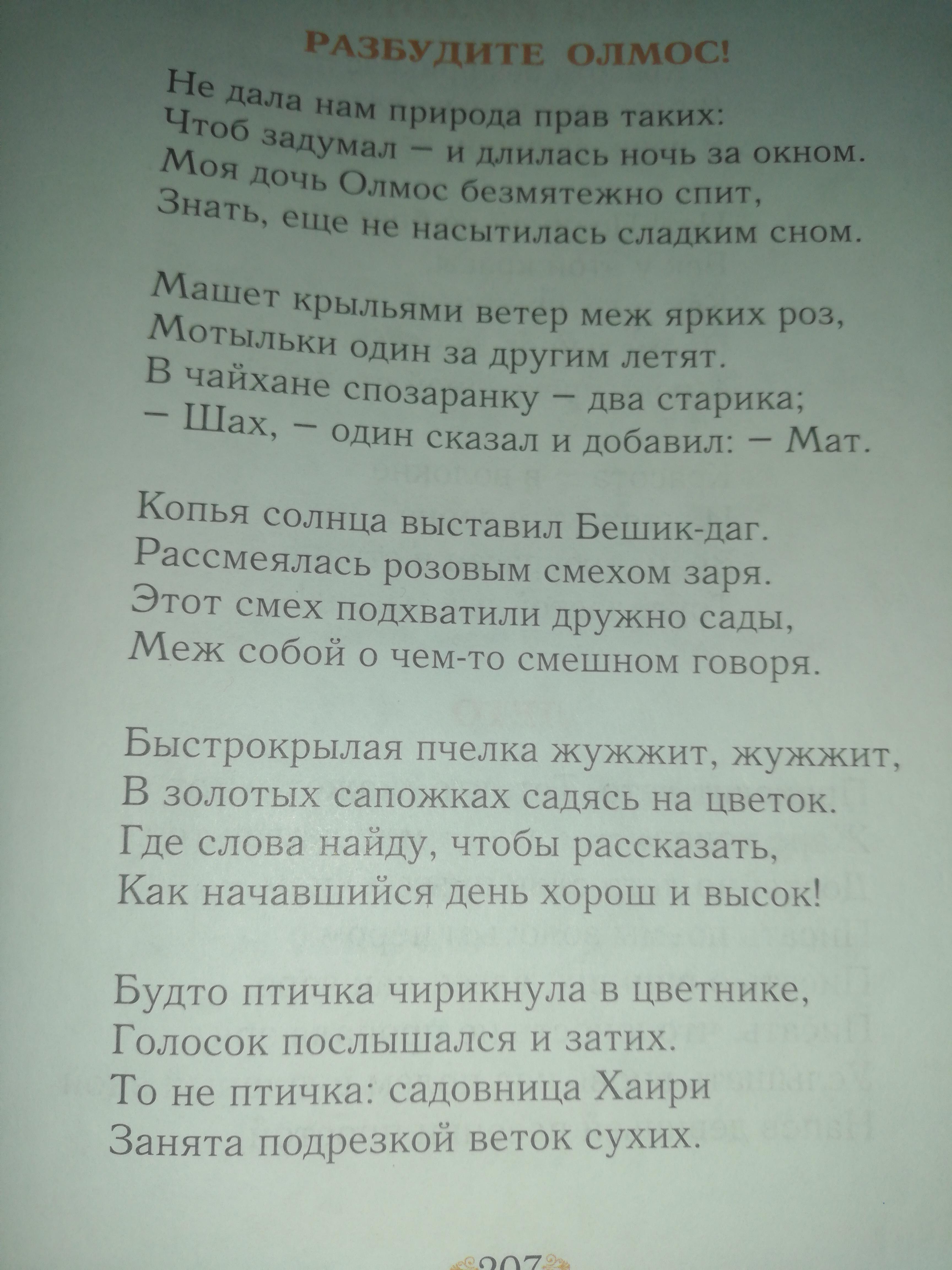 Даю 100 баллов) анализ стихотворения "Разбудите Олмос!" Нужны художественные средства