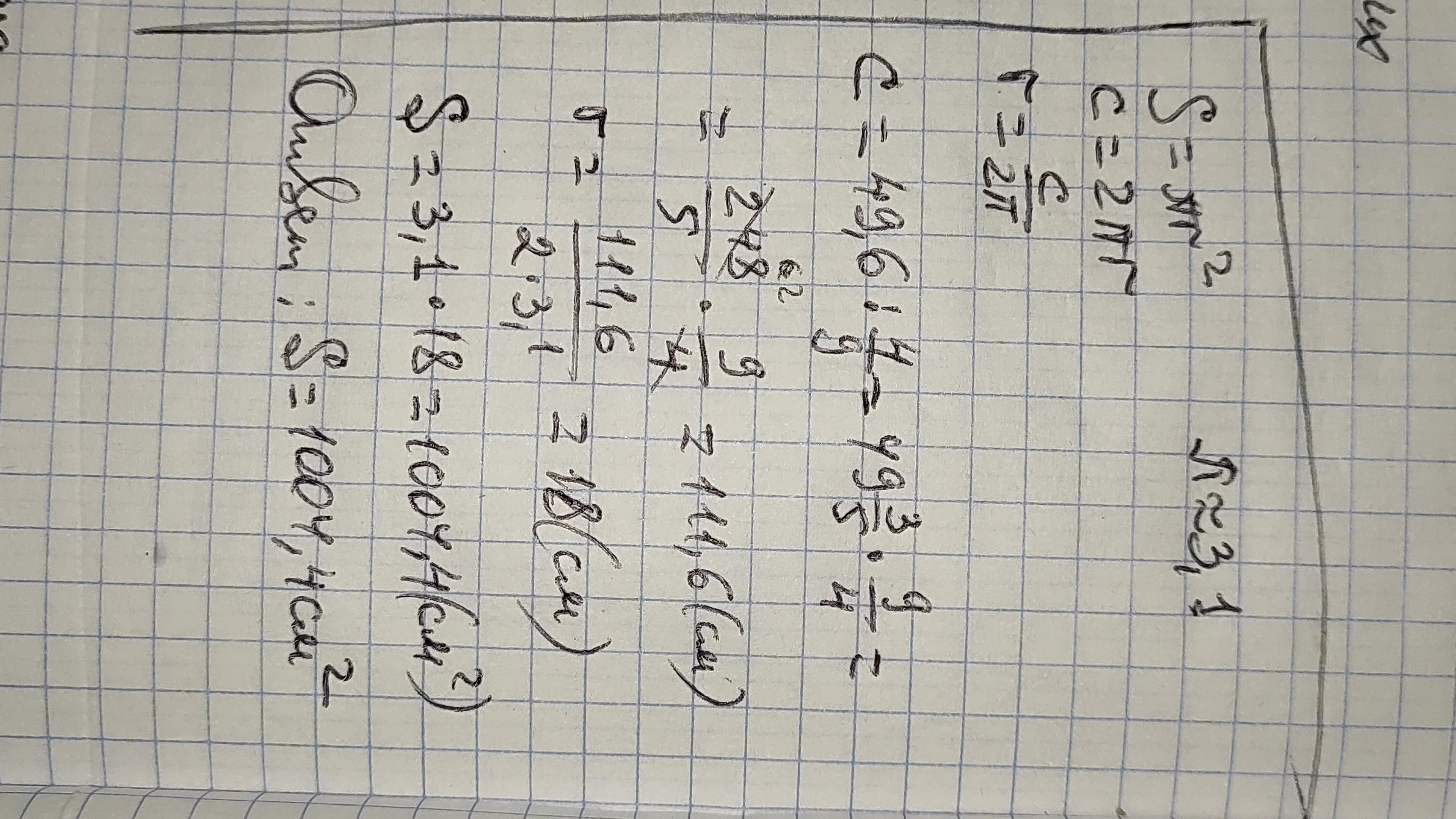 Найдите площадь круга, если 4/9 длины окружности этого круга равны 49,6 (число π округлите до десятых).
