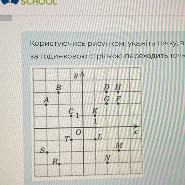 Користуючись рисунком, укажіть точку, в яку при повороті навколо точки О на 90°