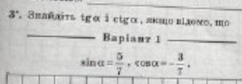 Терміново потрібно!!! АЛГЕБРА 10 КЛАС! Знайти tg a та ctg a, якщо відомо sin та cos.