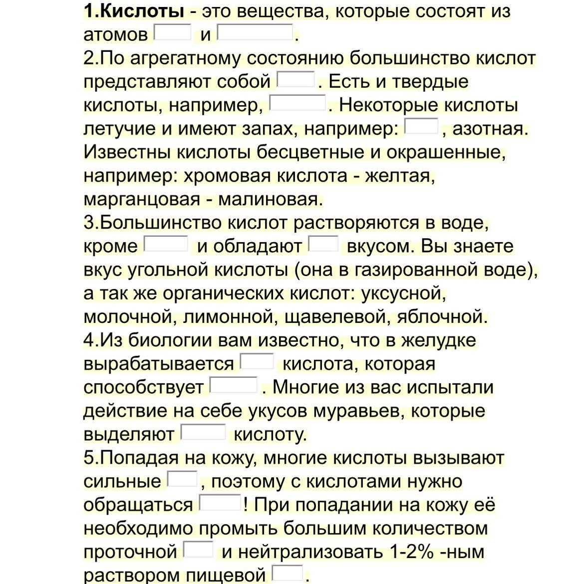 1. Кислоты - это вещества, которые состоят из атомов водорода и одного или нескольких других элементов.