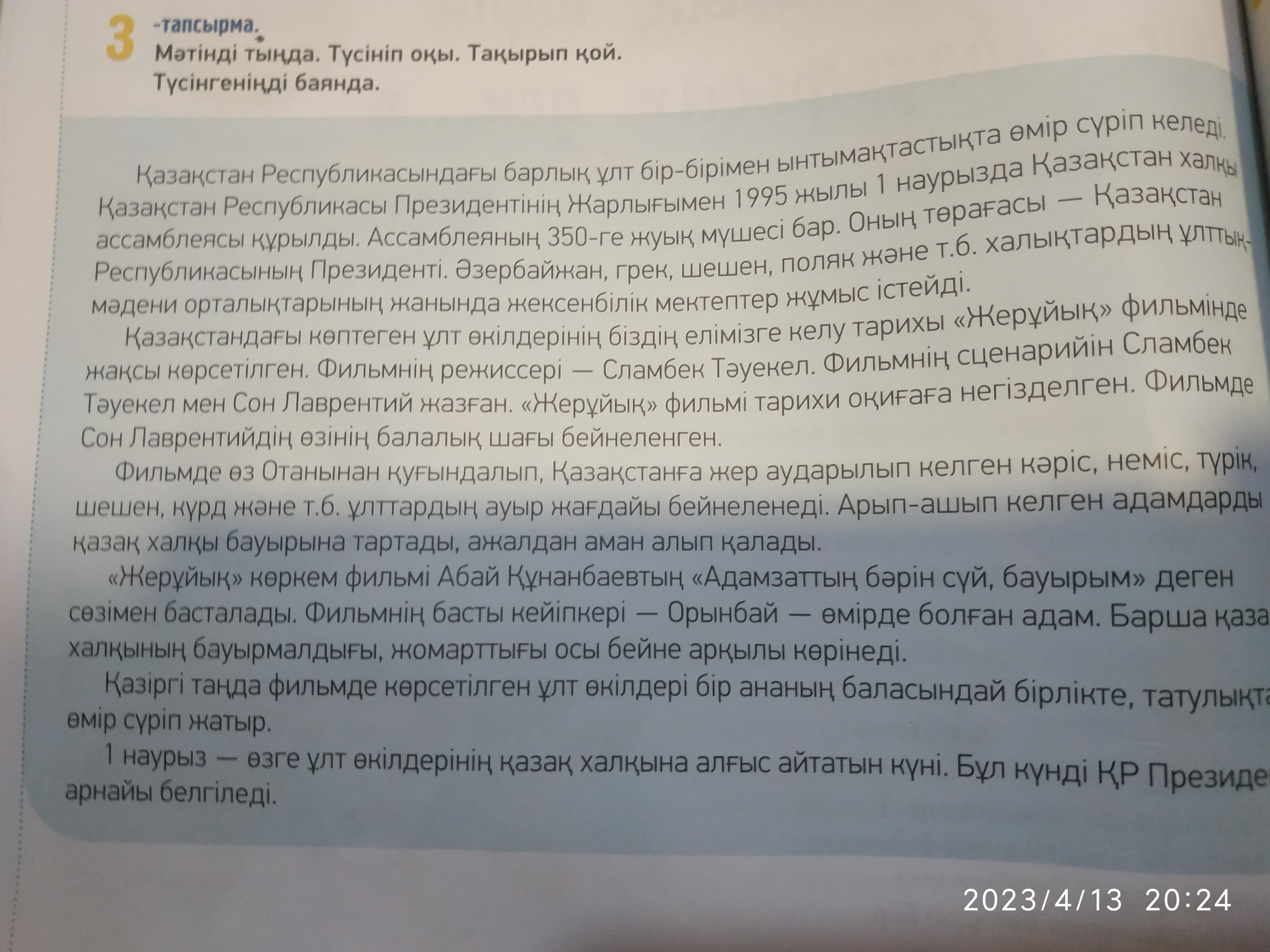 1)Қазақстан Республикасындағы барлық ұлт өкілдері тату-тәтті және ынтымастықта өмір сүріп келеді.