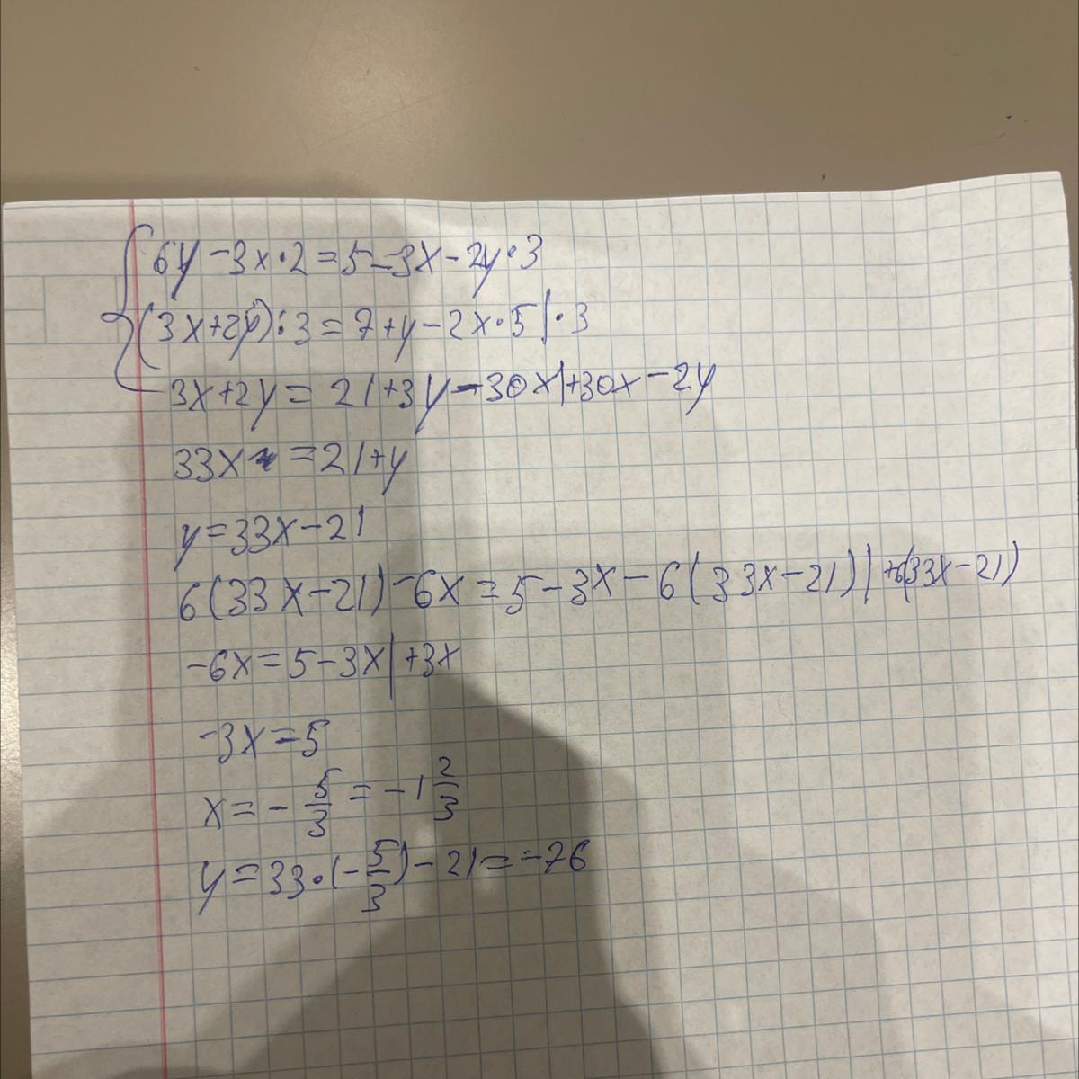 6y-3x 2 =5- 3x-2y 3 \\ (3x + 2y)/3 =7+ y-2x 5 . Памагите