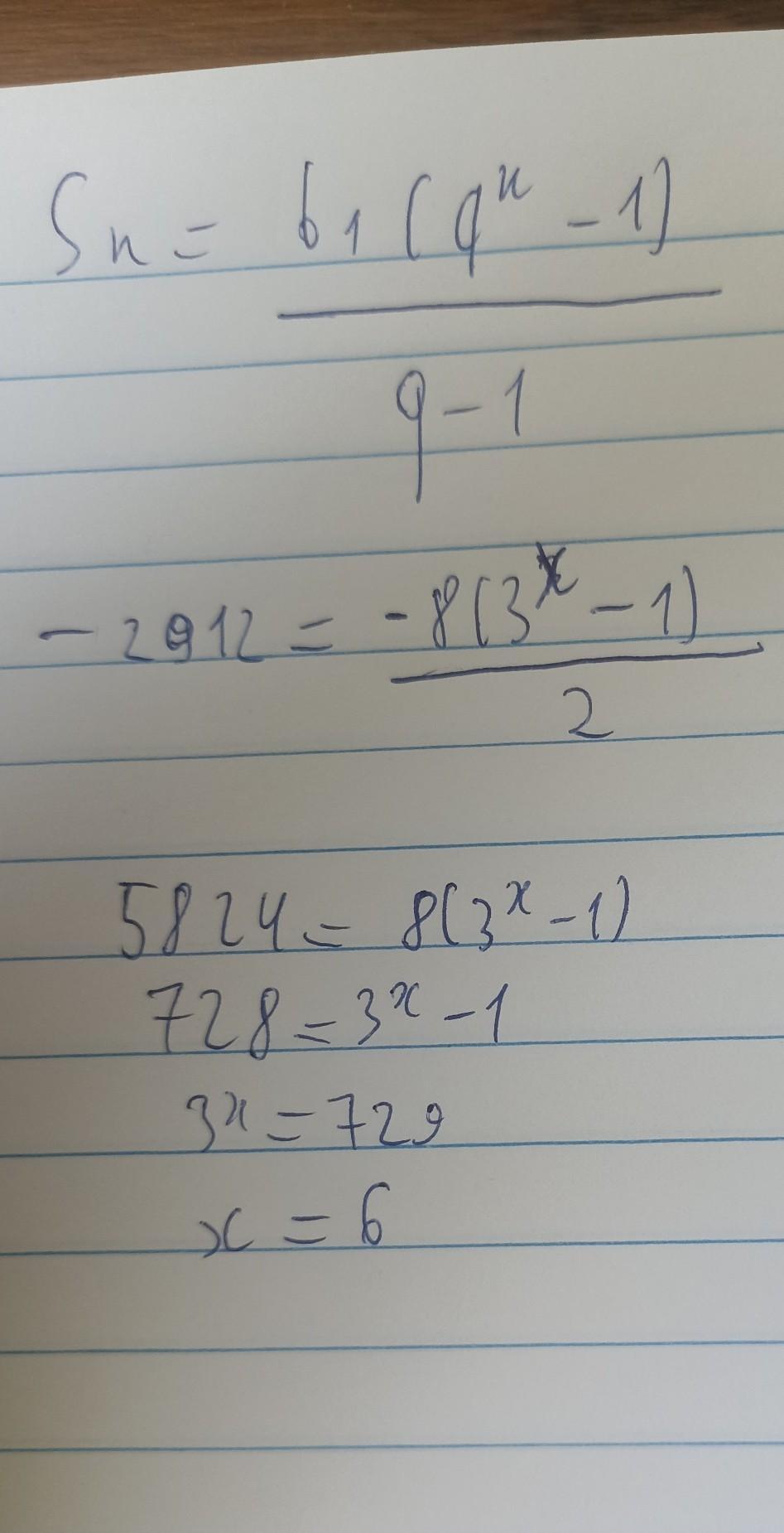Знайдіть кількість членів скінченної геометричної прогресії (ал), якщо а1 = -8, знаменник q=3, а сума всіх