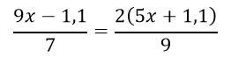 (9x-1,1)/7=(2(5x+1,1))/9 ;