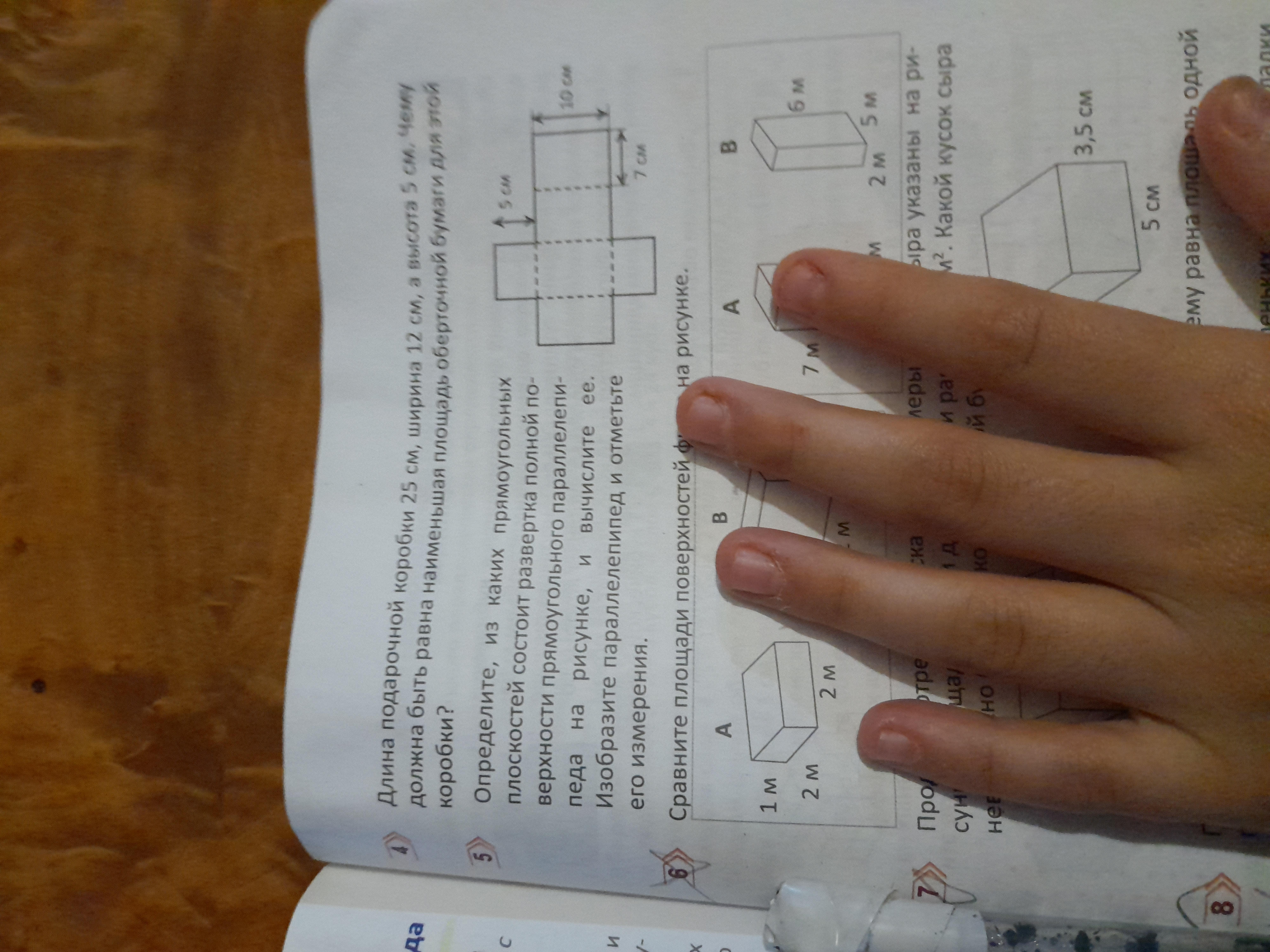 параллелепипед состоит из 2 квадрата длиной 5cm и 4 прямоугольников длиной 10 см а шириной 7 см