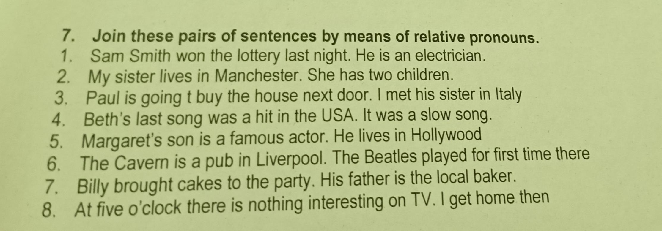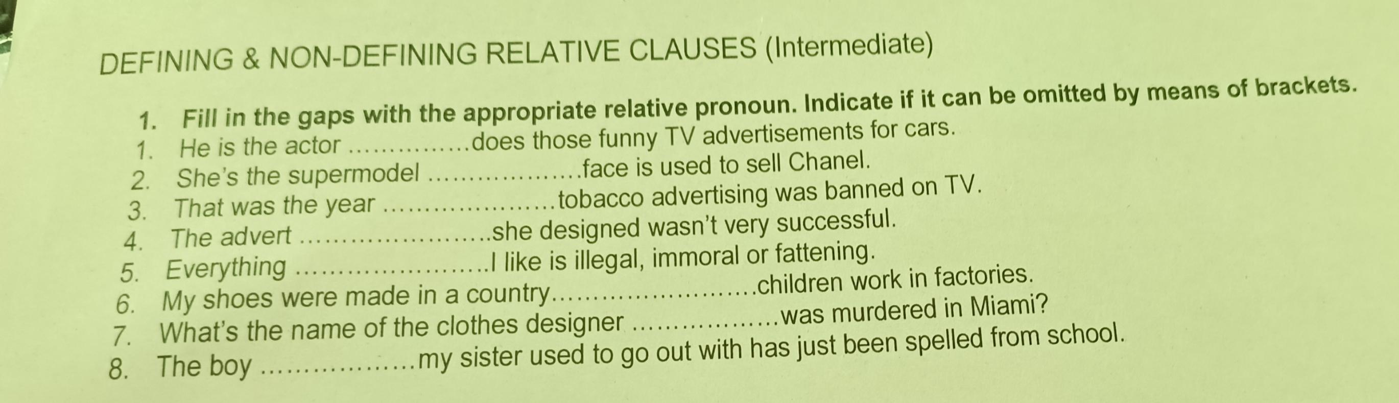8. The boy whom my sister used to go out with has just been expelled from school. (whom)