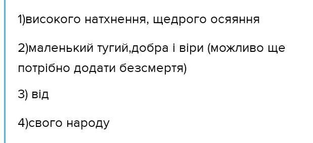 2)маленький тугий,добра і віри (можливо ще потрібно додати безсмертя)