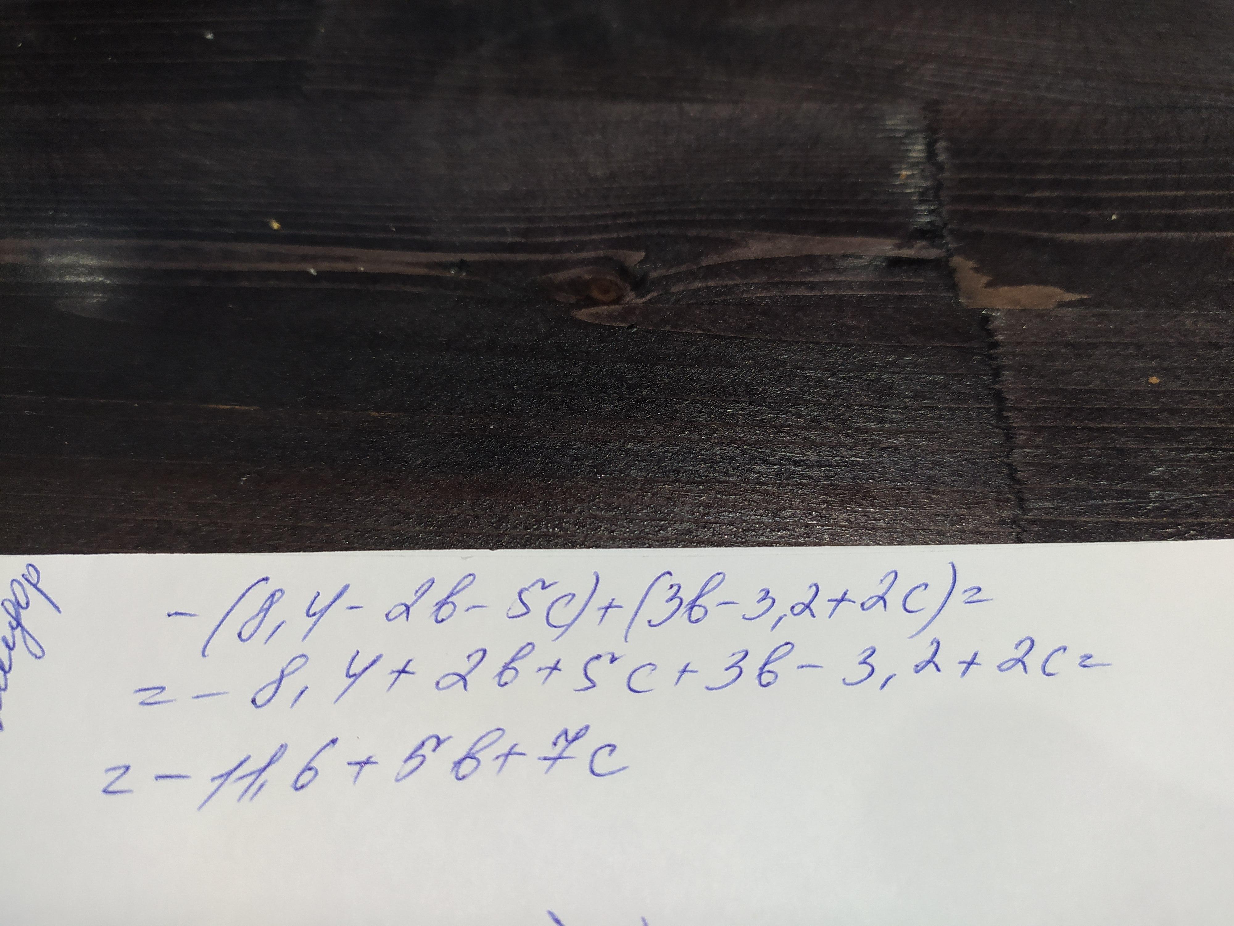 -(8.4-2в-5с)+(3в-3,2+2с)= -8,4+2В+5С+3В-3,2+2С= -11,6+5В+7С.
