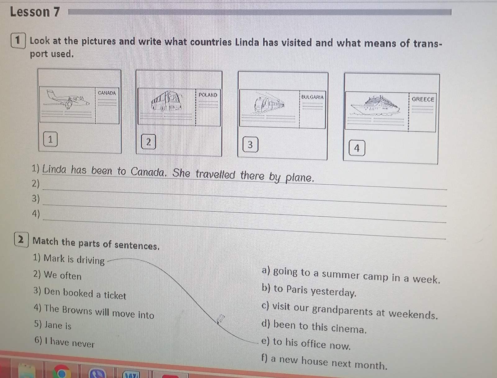 3. Linda has been to Bulgaria. She travelled there by trolleybus (якщо то тролейбус, бо погано видно)