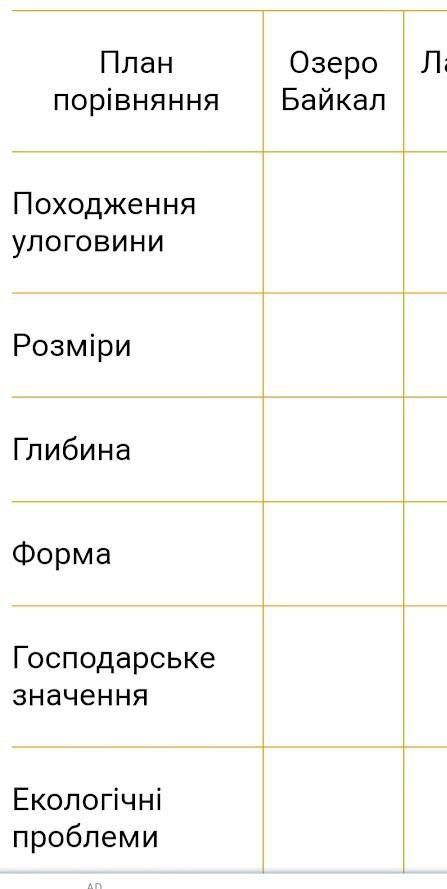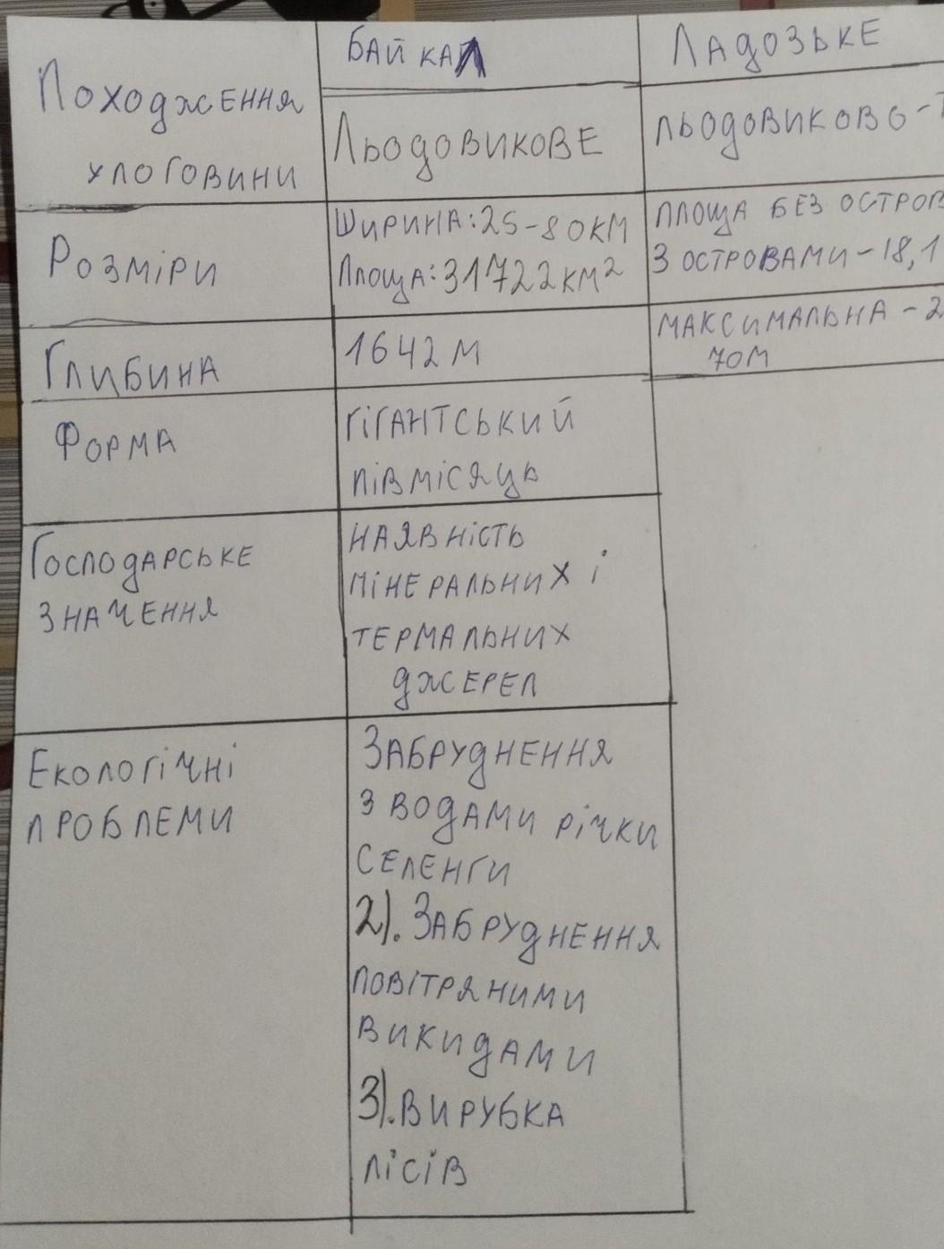 Допоможіть будь ласка: таблиця по географії, озеро Байкал і Ладозьке.