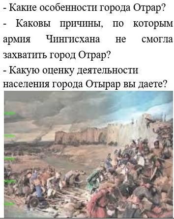 2.Город не сдавался, несмотря на жёсткие методы, примененные войсками Чингисхана. Крепость постоянно обстреливалась из катапульты, заряженной сосудами, внутри которых горела нефть. Также причиной является то,что течении 6 месяцев жители Отрара оказывали усиленное сопротивление войску Чингисхана. Во главе города стоял Гаир хан. Он и его приближенные сделали все чтобы организовать достойный отпор противнику.