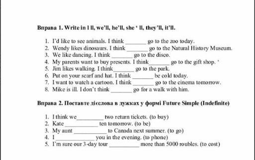 7. I want to watch a cartoon. I think we'll go to the cinema tomorrow.