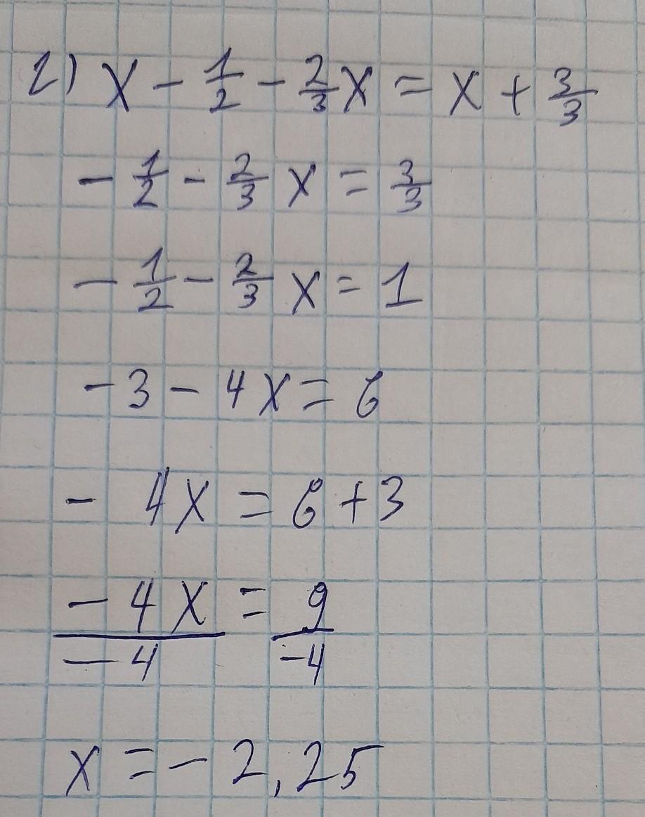 г) -1/2 - 2х/3 = 1