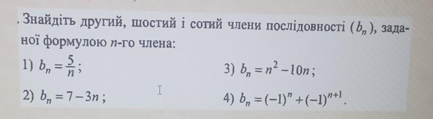 Знайдіть другий, шостий i сотий члени послідовності (b,), заданої формулою п-го члена: