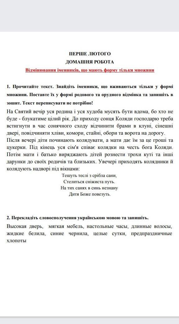 2. Висока дверь, м'ягка мебіль, настільний годинник, довге волосся, рідкі білила, сині чернила, цілу добу, передсвятковий хлопіт