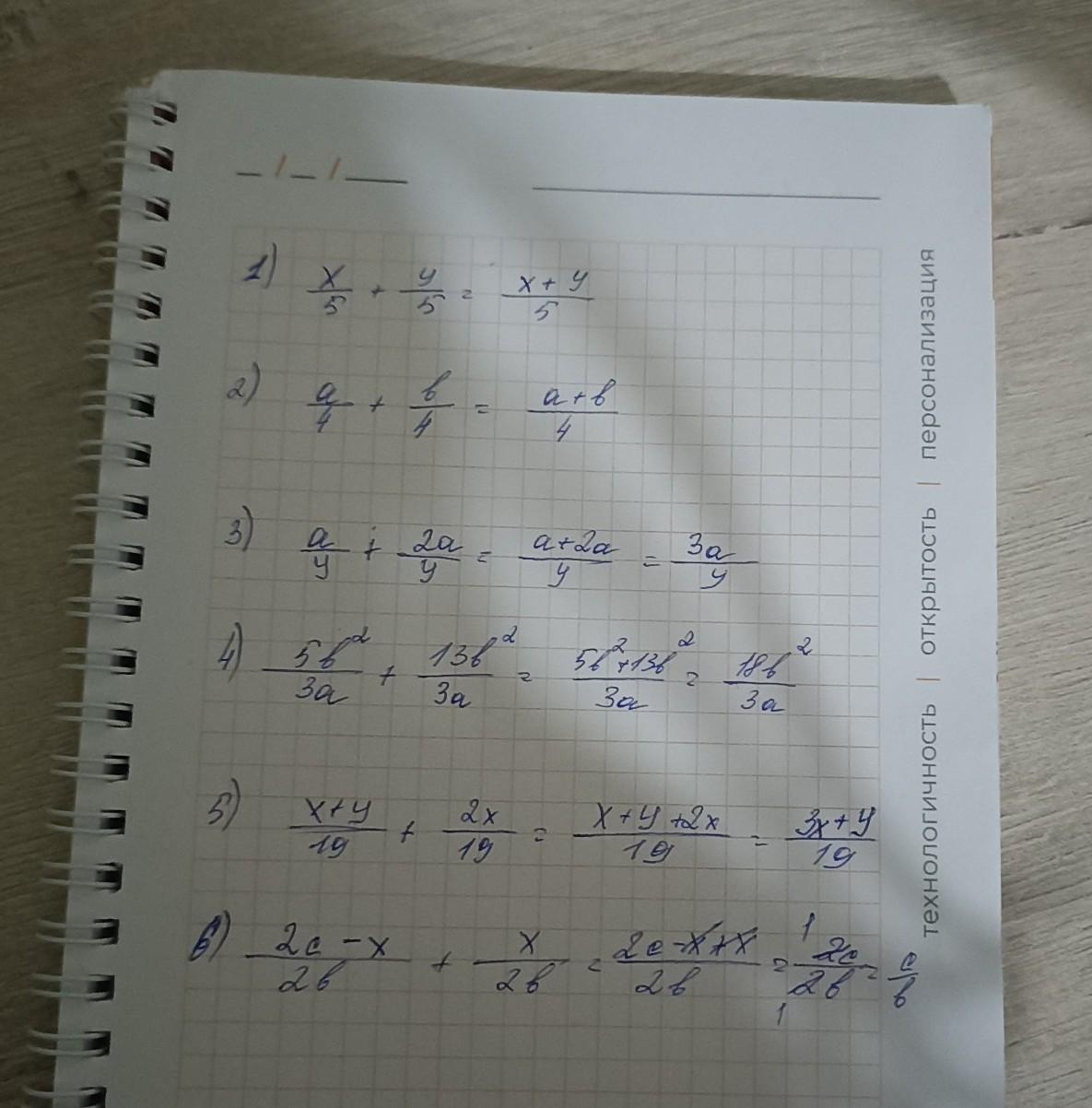 39.2. Выполните сложение дробей: у 3+1; 1) 4) 56² 136² За За + 2) 5) a b + 4 x + y 19 + 2 x 19 3) 6) У 2c-x 20 Х 20