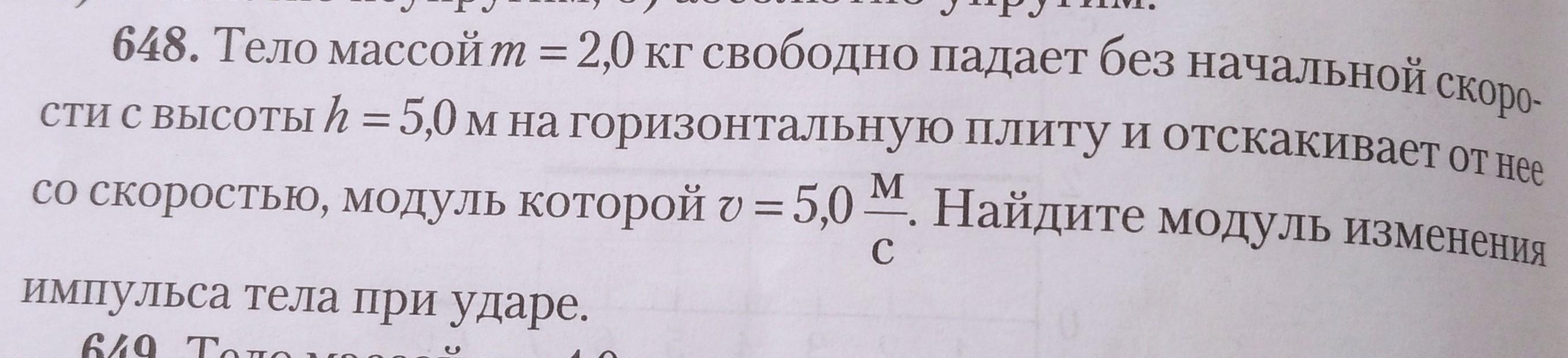 После удара тело отскакивает от горизонтальной поверхности со скоростью 5 м/с. Чтобы найти абсолютную величину изменения импульса тела, мы можем вычислить разницу между начальным и конечным импульсом.