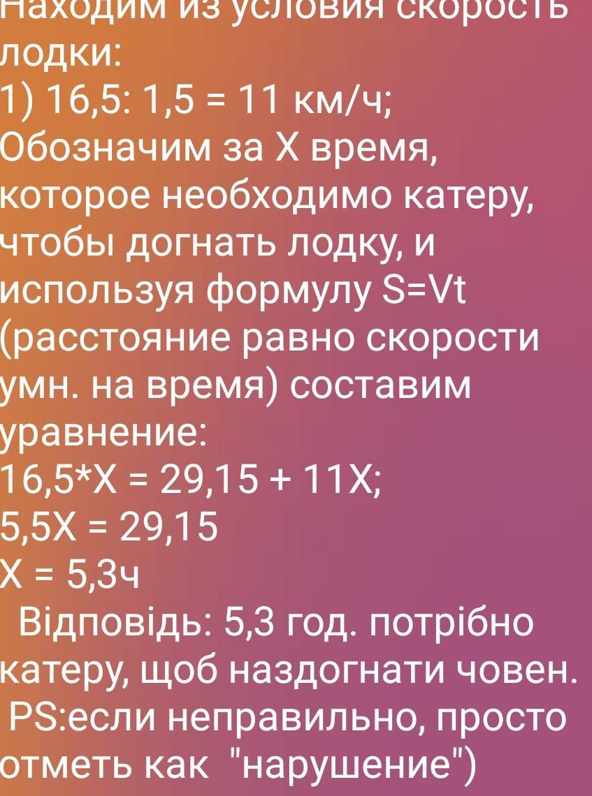потрібно катеру, щоб наздогнати човен?