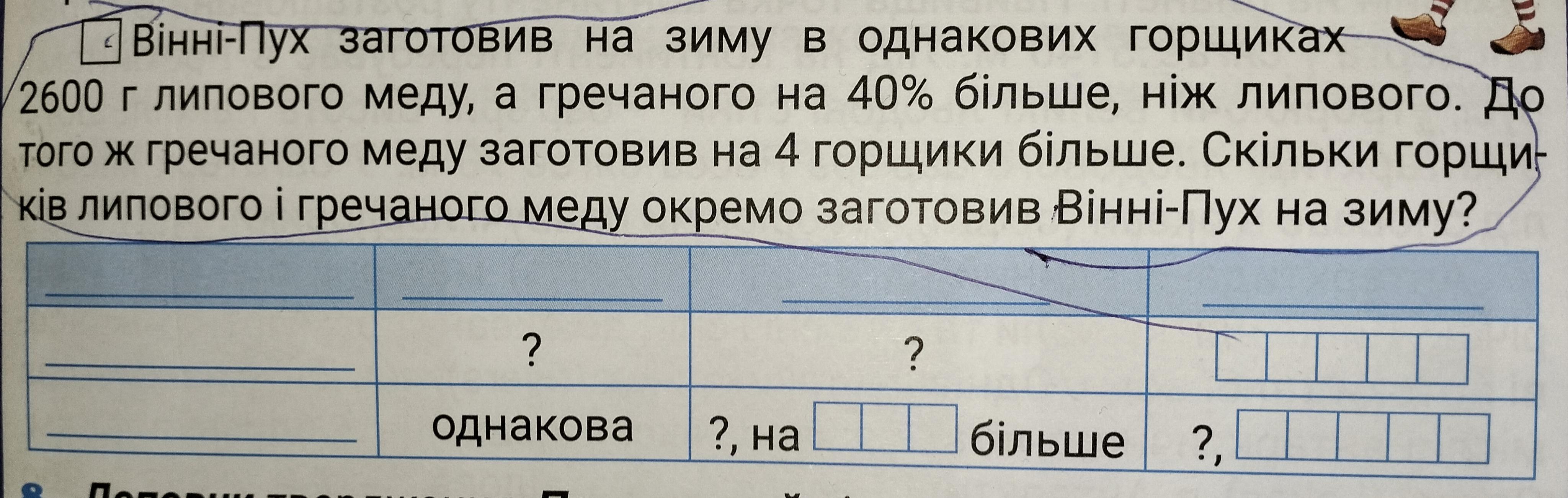 5) 3640 : 260 = 14 (горшочков) - с гречаным медом заготовил Винни-Пух
