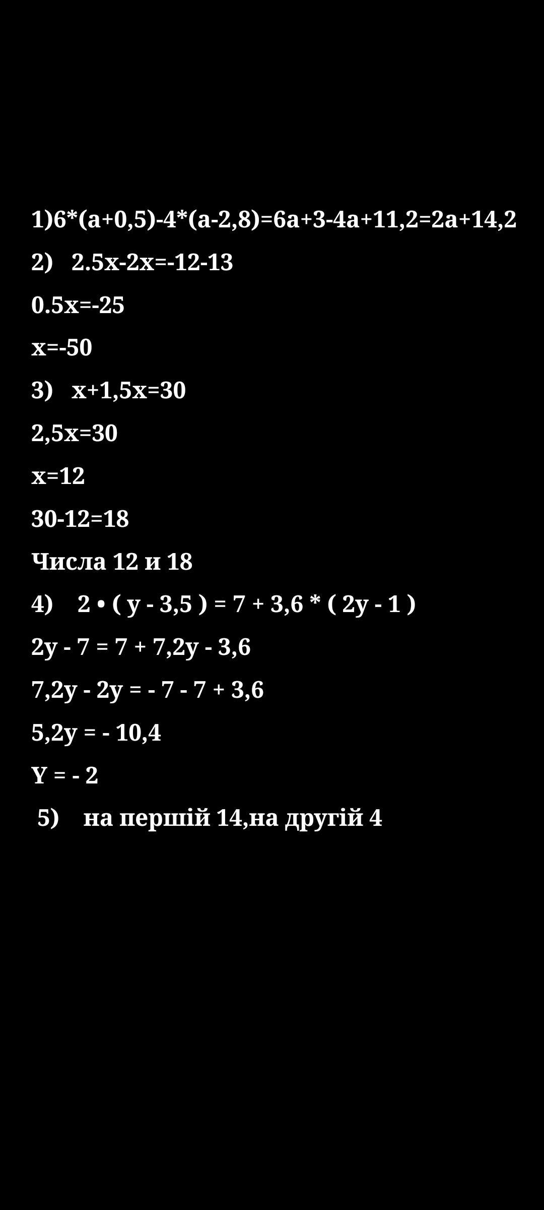 1) 6*(а+0,5)-4*(а-2,8)=6а+3-4а+11,2=2а+14,2