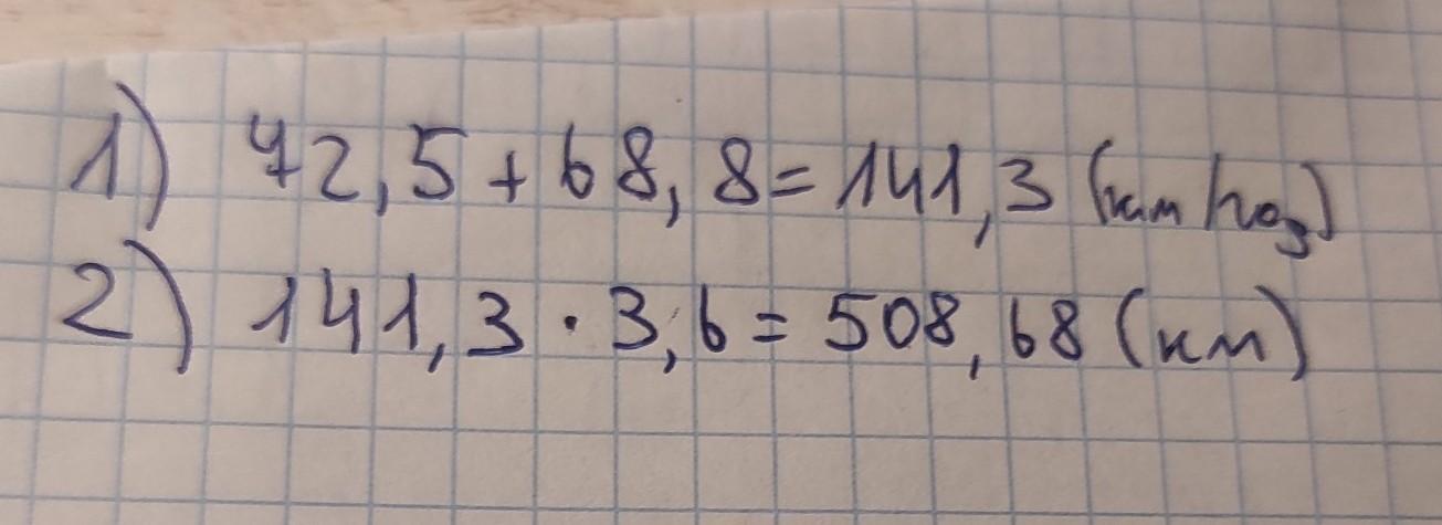 Із двох міст назустріч один одному одночасно виїхали легковий і вантажний автомобі-лі. Швидкість легкового автомобіля 72,5 км/год, а вантажного - 68,8 км/год. Через 3,6 год вони зустрілися. Визначте відстань між містами.