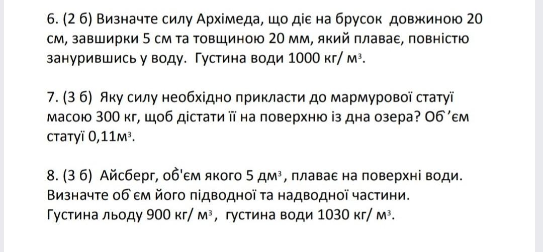 7)Щоб визначити силу, необхідну для підняття мармурової статуї з дна озера, нам потрібно скористатися наступною формулою: