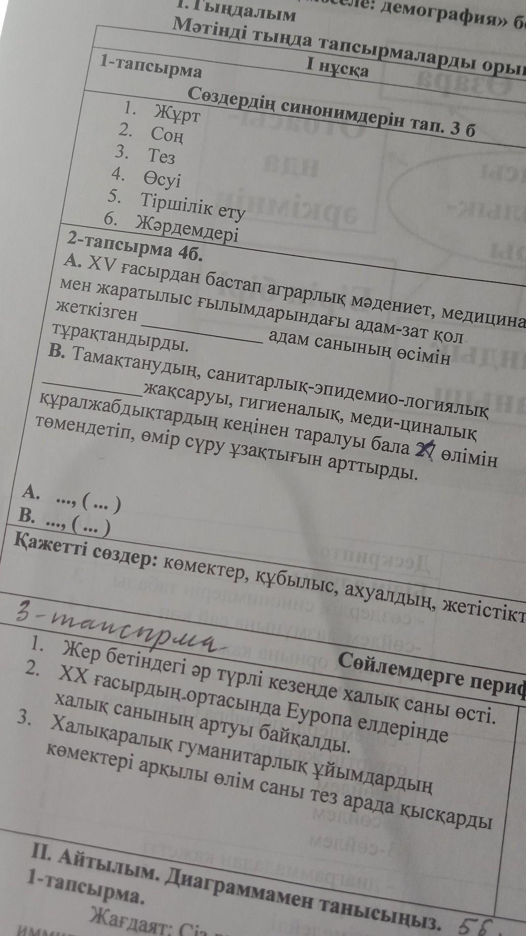 ді тында тапсырмаларды орында I пуска 1-тапсырма 1. Журт 2. Сон 3. Tes 4. Ocyi 5. Тіршілік ету 6. Жәрдемдері 16 2. TRE Сөздердің синонимдерін тап. 3 6