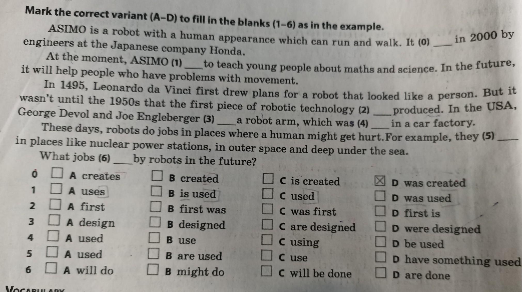 1 А 2D 3A 4C 5B 6B