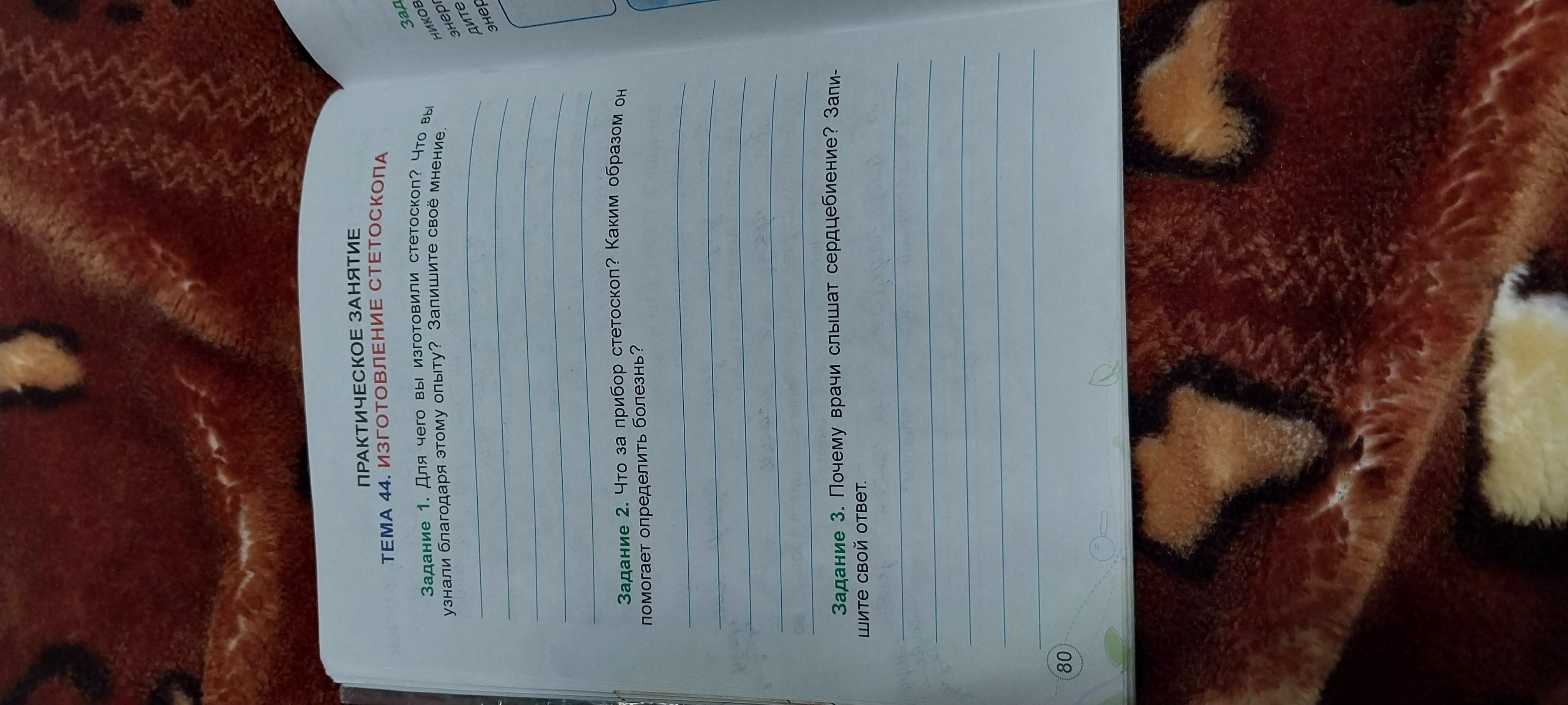 Ответ:задание 1. при медицинском осмотре посредством стетоскопа врач слушает сердцебиение человека. задание 2 стетоскоп усиливает звук. Таким образом выявляется многие заболевания. задание 3. Потому что стетоскоп усиливает звук сердцебиение.