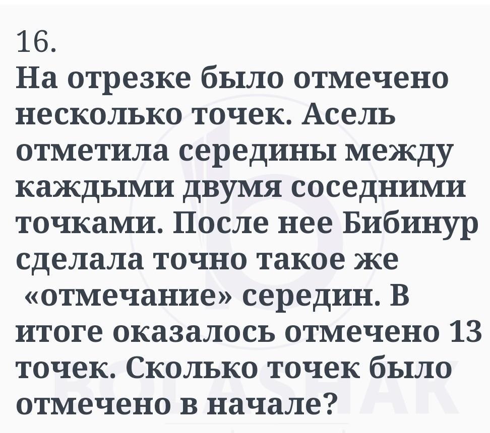 1)13÷2+1=7 (точек) - после того как отметила Асель
