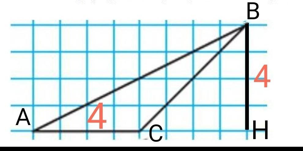 S = 1/2 • AC • BH = 1/2 • 4 • 4 = 8 (квадратных единиц)