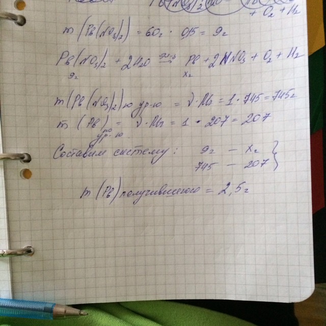 Яку масу свинцю можна добути здійснюючи електроліз водного розчину Рb(NO3)2 масою = 60г. Массова частка солі у розчині =15%. Який об*єм газу виділиться під час електролізу?