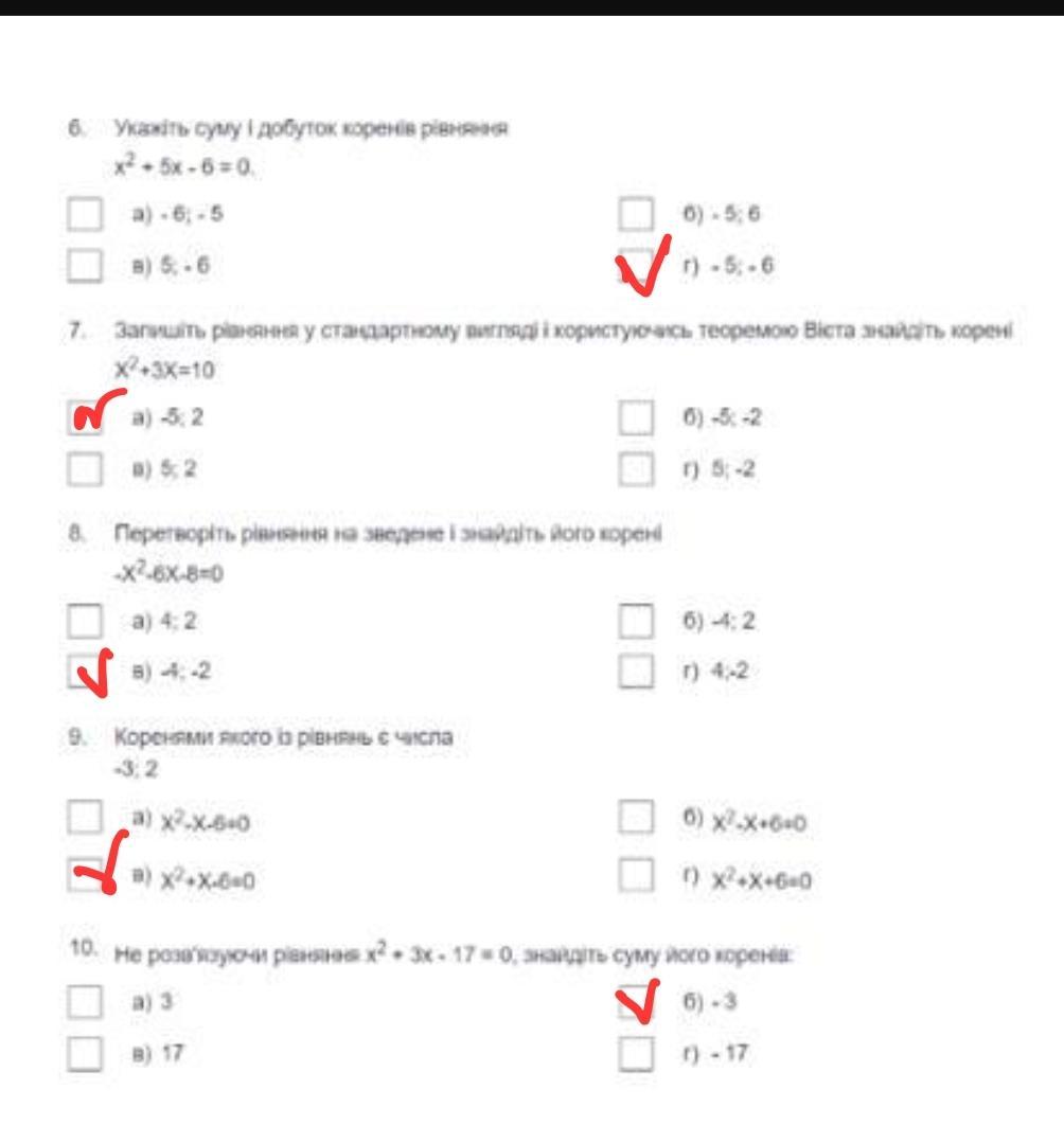 7. Запишіть рівняння у стандартному вигляді і користуючись теоремою Вієта знайдіть корені