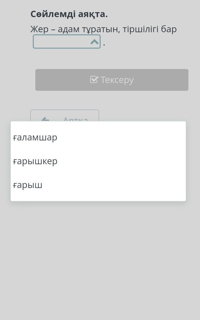 Сөйлемді аяқта. Жер – адам тұратын, тіршілігі бар ғаламшар ғарышкер ғарыш Лютия &Тексеру