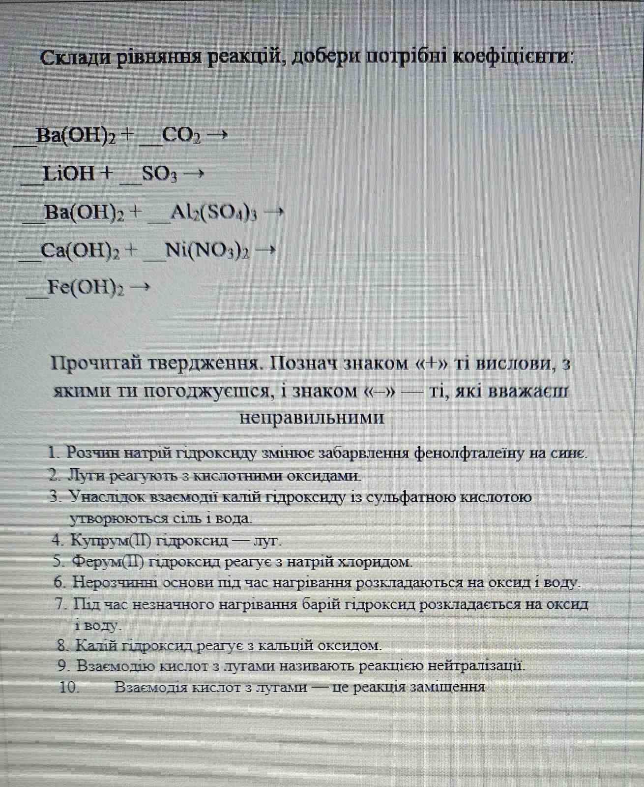 Ответ:1. Ba(OH)2 + CO2 → BaO + H2CO3