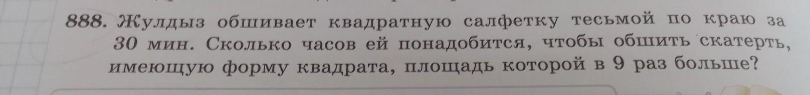 Ответ: Жулдызу потрібно 1,5 години, щоб обшити скатерть.