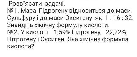 Щоб знайти хімічну формулу кислоти в цій задачі, в першу чергу потрібно визначити співвідношення кількості атомів різних елементів у молекулі. У задачі вказано, що в кислоті міститься 1,59% Гідрогену і 22,22% Нітрогену. Оскільки у молекулі кислоти Гідроген і Нітроген зв'язані з Оксигеном (так як інші елементи не згадуються), можна припустити, що одна молекула кислоти містить n атомів Гідрогену, m атомів Нітрогену та k атомів Оксигену. Тоді можна записати такі рівняння відношень кількості атомів в молекулі: