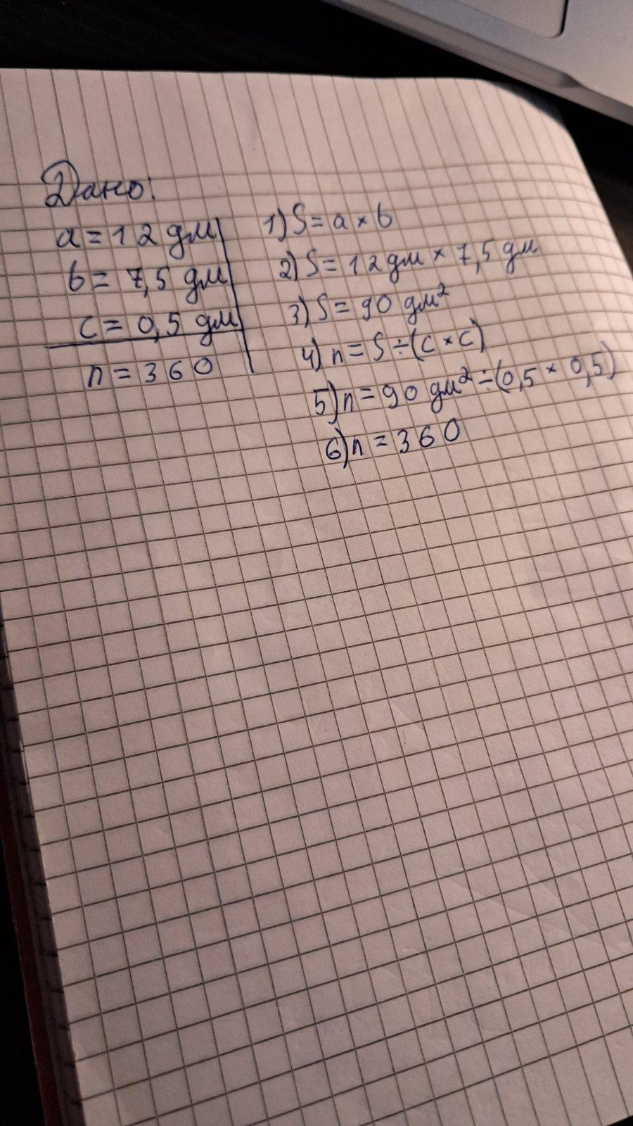 Прямокутник, сторони якого 12 дм і 7,5 дм, розрізали на квадрати зі стороною 0,5 дм. Скільки утворилося квадратів?