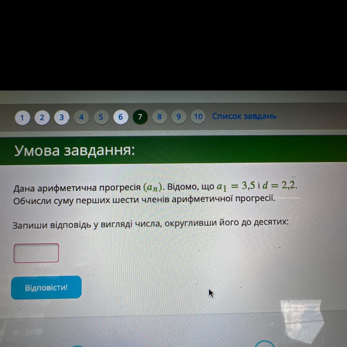 Дана арифметична прогресія (an). Відомо, що а1 = 3,5 i d = 2,2.