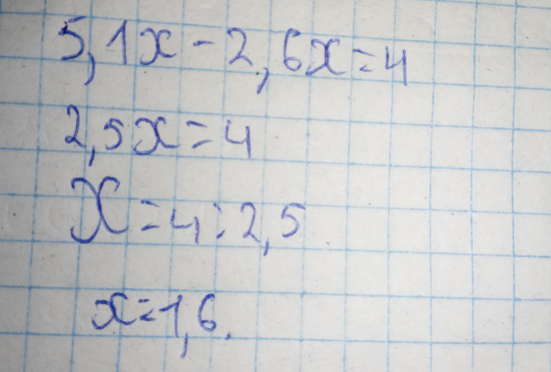 Пошаговое объяснение:5,1 х - 2,6 х = 4