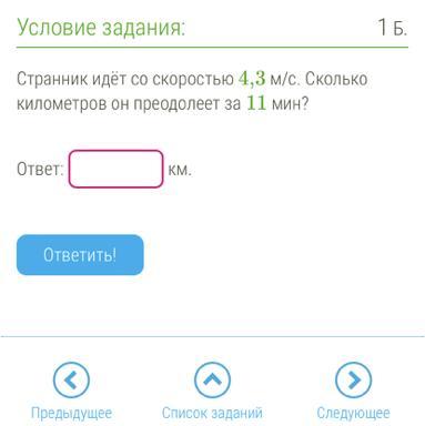 Странник идёт со скоростью 4,3 м/с. Сколько