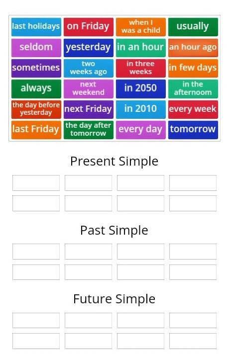 In 2010, last Friday, last holidays, two weeks ago, the day before yesterday , am hour ago, when I was a child , in three weeks ago
