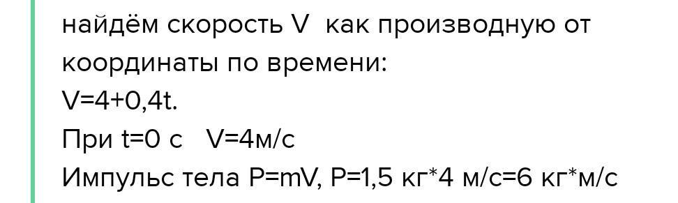 Маса тіла 2,4кг,а рівняння руху має вигляд Х=150+7t-2t2. Визначте імпульс тіла в початковий момент часу.