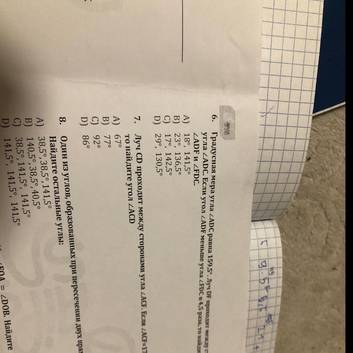 Градусная мера угла ADC равна 159,5°. Луч DF проходит между сторонами