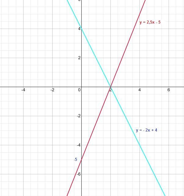 {-5x + 2y = - 10 → {2y = 5x - 10 → {y = 2,5x - 5